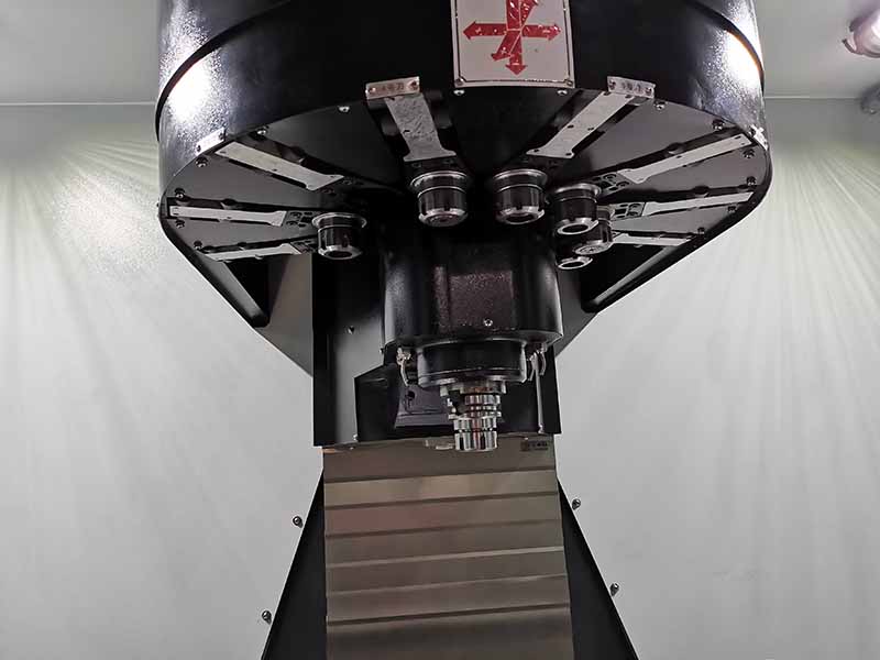 V8T立式加工中心采用專用刀庫(發(fā)明專利)是以立柱為中心,重心平衡,換刀快速靈活,每把刀擁有固定的刀號,從不亂刀。