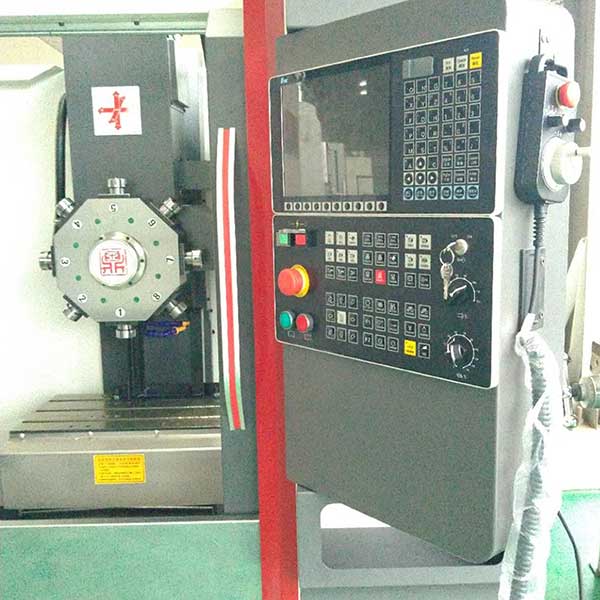 這是一款帶4工位刀庫的數(shù)控銑床,右邊黑色的那臺就是它,它的整體結(jié)構(gòu)與炮塔式銑床相似,我們在設(shè)計上做了一些調(diào)整,伸臂加粗設(shè)計,主軸為臺制BT40非標(biāo)定制的直連7000轉(zhuǎn),可剛性攻牙,配備廣數(shù)980MDI數(shù)控系統(tǒng),鉆銑攻鏜樣樣行!